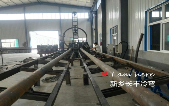 主要由基礎軌道系統、螺旋盤管主機、螺旋管立支撐料架、螺旋管水平出料料架、液壓系統、電控系統、模具等部分組成。